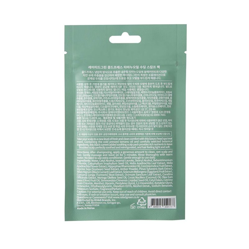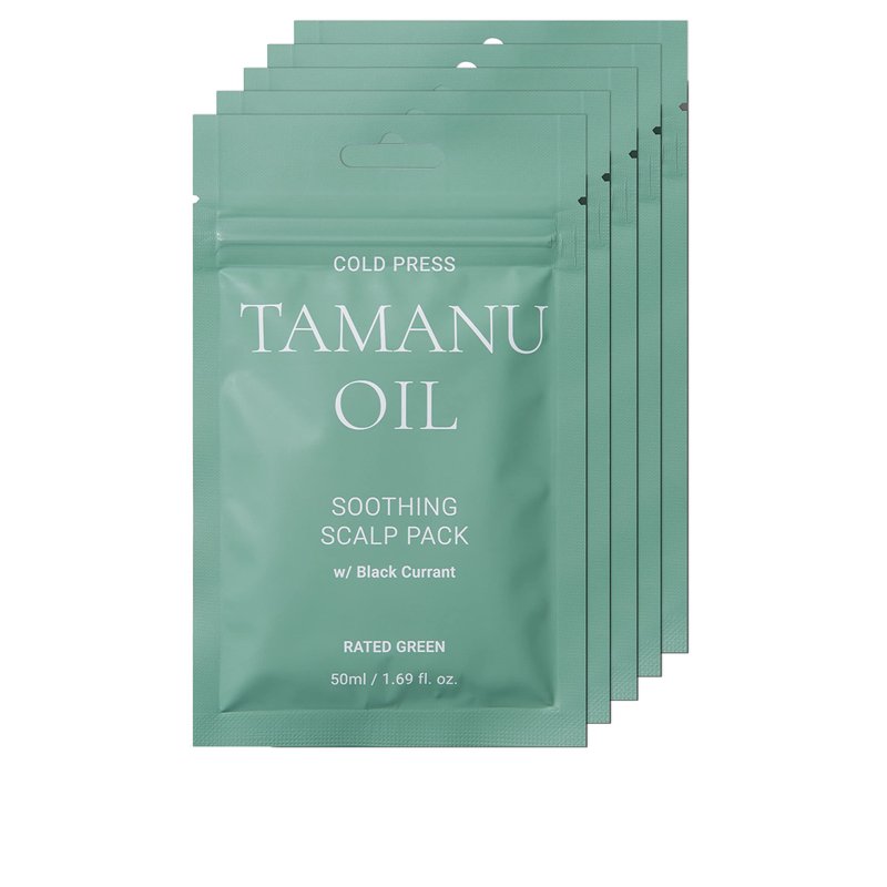 RATED GREEN Cold Press Tamanu Oil Soothing Scalp Pack w/Black Currant | Korean Hair Care Hair Conditioning Mask | Deep Conditioning Hair Mask for Dry Damaged Hair (Pack of 5, 8.45 Fl. Oz)