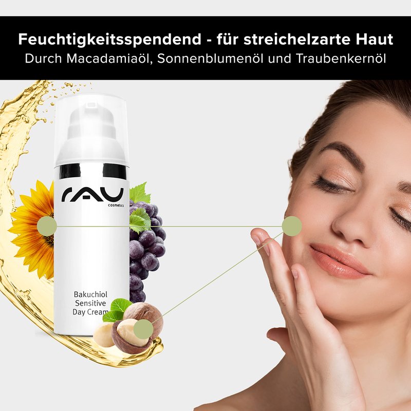 - Bakuchiol Sensitive Cream is suitable in addition to Bakuchiol or Hyaluron Serum, eye cream, face cream, night cream and before make-up. In combination with an anti-wrinkle serum or anti-aging concentrate for women and men, you can achieve the best possible anti-wrinkle effect immediately in the long term. Suitable: RAU Cosmetics Hyaluron Ultimate Lifting.