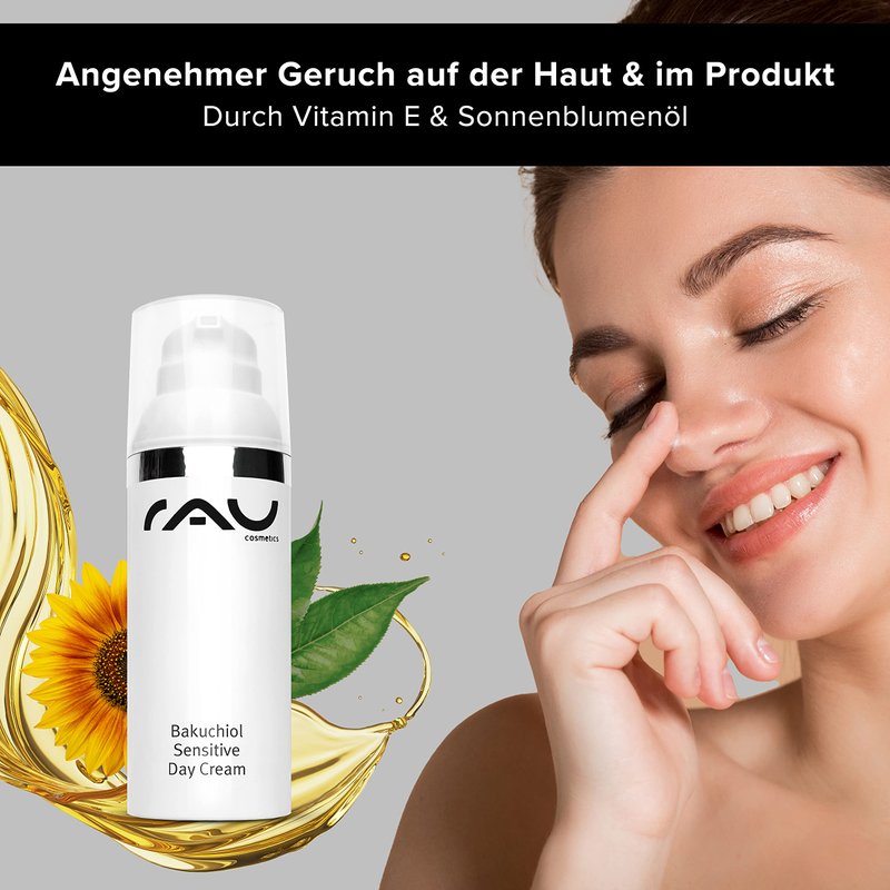 RAU Cosmetics Bakuchiol Sensitive Day Cream (1.7 Fl Oz) - Cream face - Light day cream - for mature skin & impure skin - with almond oil, grape seed oil - facial care.