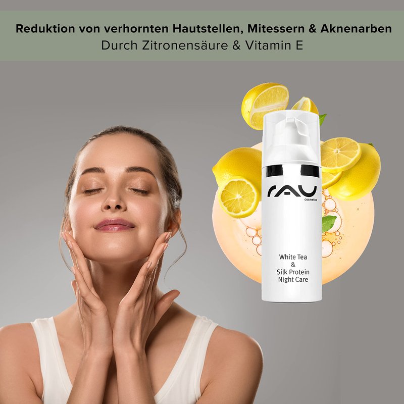 RAU White Tea & Silk Protein Night Care (1.7 Fl.oz) - Regenerating face mask with white tea - anti dryness moisturizer mask for dry skin - anti-aging face mask - over night repair