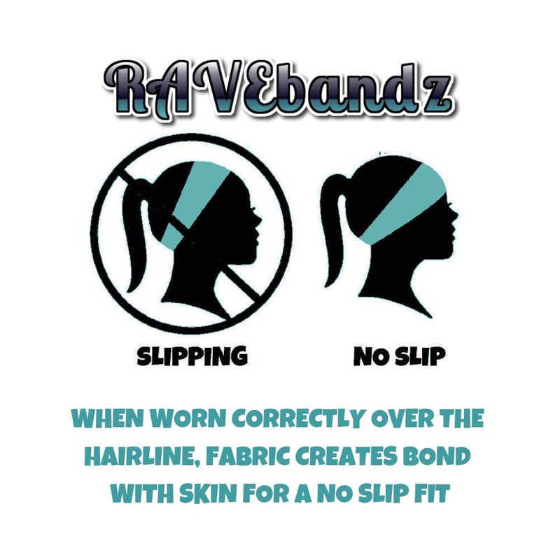 RAVEbandz PRO wide stretch no slip headbands. Where function meets fashion. We believe if you look good you feel good, so we design with you in mind! The PRO comfortably contours to the unique shape of your head when worn correctly, over top of your hairline - half on your forehead, half on your hair, without the dreaded headband headache. Made from a moisture wicking, breathable and lightweight fabric blend, this headband will absorb sweat during sports; intense activity. Key features: Unisex Designs Maxi Dri Moisture Wicking Lightweight & Breathable Ideal for Lifestyle & Fitness Cover stitched for comfort and durability Machine washable Proudly made in the USA