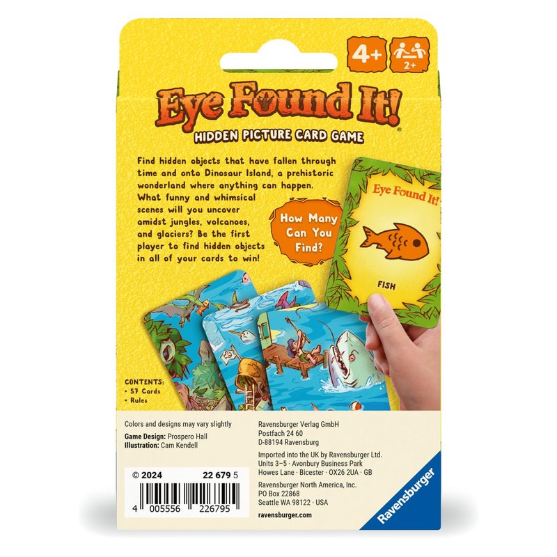 - What You Get: Dinosaur Island Eye Found It! Card Game comes with 57 full-color cards and instructions.