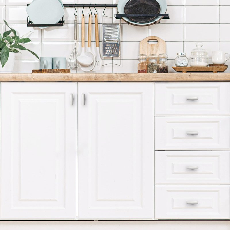 - Simple look: The nickel cabinet handles have a wide appeal across a range of kitchen cabinet doors and drawers. The Brushed Nickel handles have a clean and timeless look that works with farmhouse, vintage, traditional and transitional styles.