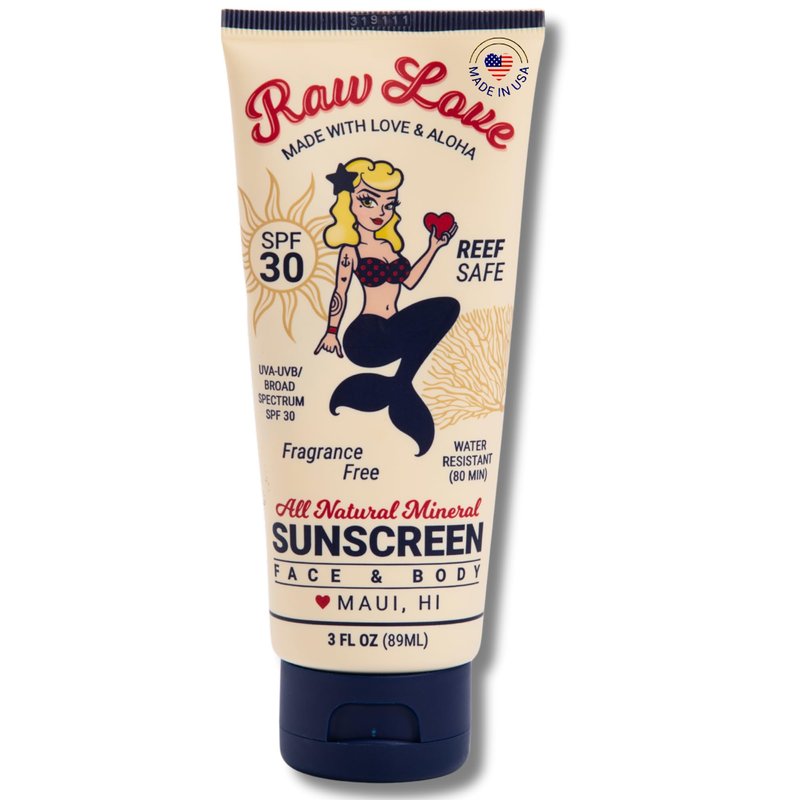 Raw Love Mineral Sunscreen Lotion for Face & Body | Reef Safe Sunscreen for Adults and Kids | Zinc Oxide Sunscreen, Water Resistant, Broad Spectrum UVA/UVB SPF 30 Protection for Sensitive Skin | 3oz