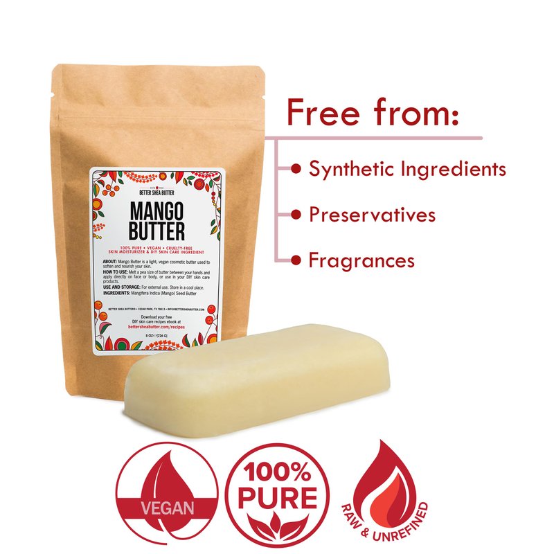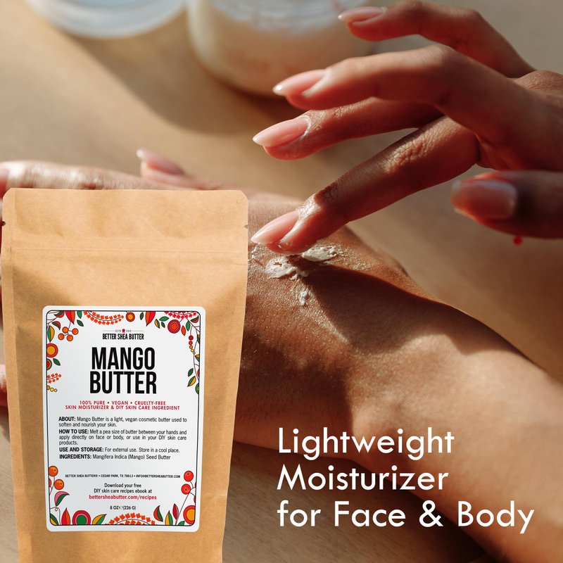 - LIGHTWEIGHT MOISTURIZER - Mango Butter is a rich, moisturizing butter that leaves your skin feeling soft and hydrated, excellent for dry or sensitive skin. Mango is a semi-solid butter that melts upon skin contact.