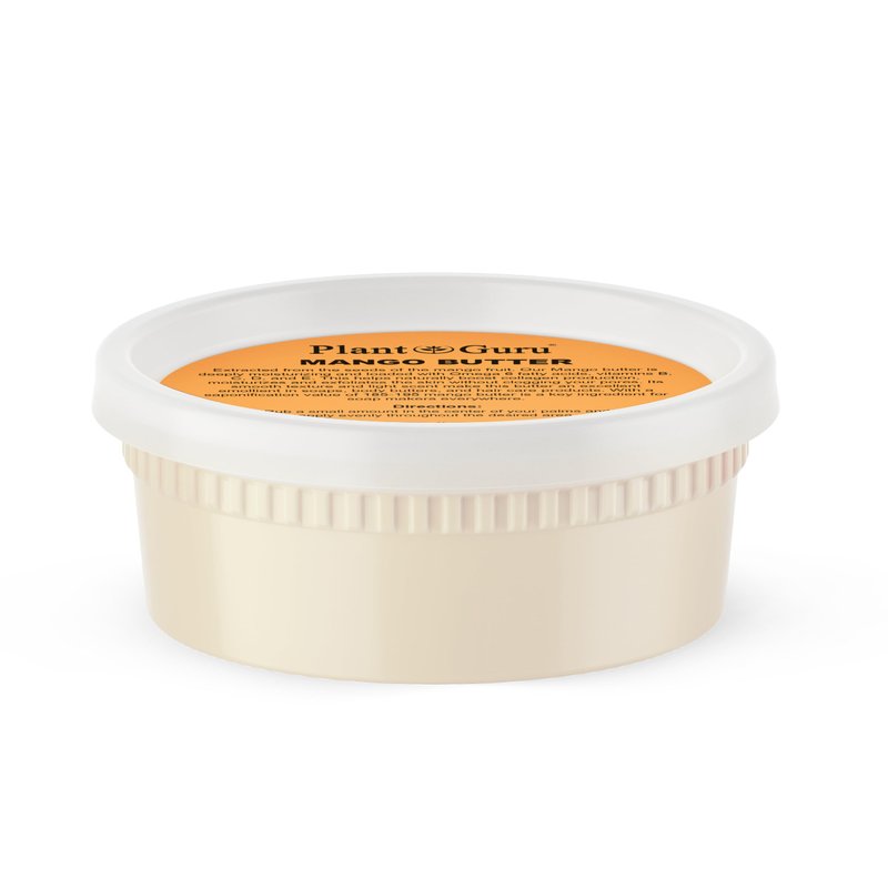 Extracted from the seeds of the mango fruit. Our Mango butter is deeply moisturizing and loaded with Omega 6 fatty acids, vitamins B, C, D, and E. This helps naturally boost collagen production, moisturizes and exfoliates the skin without clogging your pores. Its smooth texture and light scent make this butter an excellent emollient in soaps, body butters, and hair care products. With a saponification value of 185-195 mango butter is a key ingredient for soap makers everywhere.