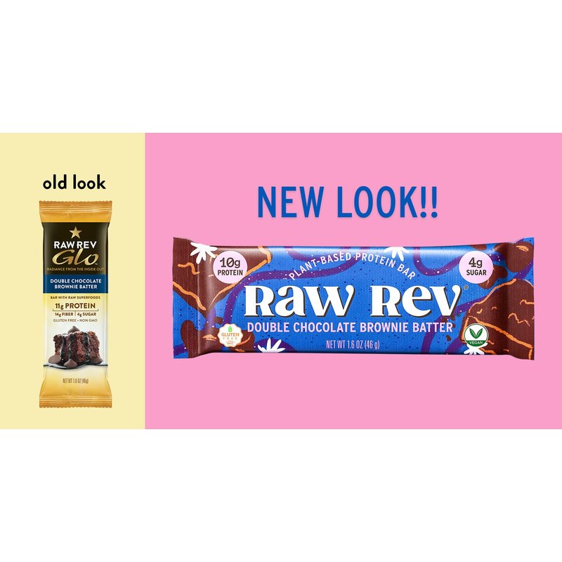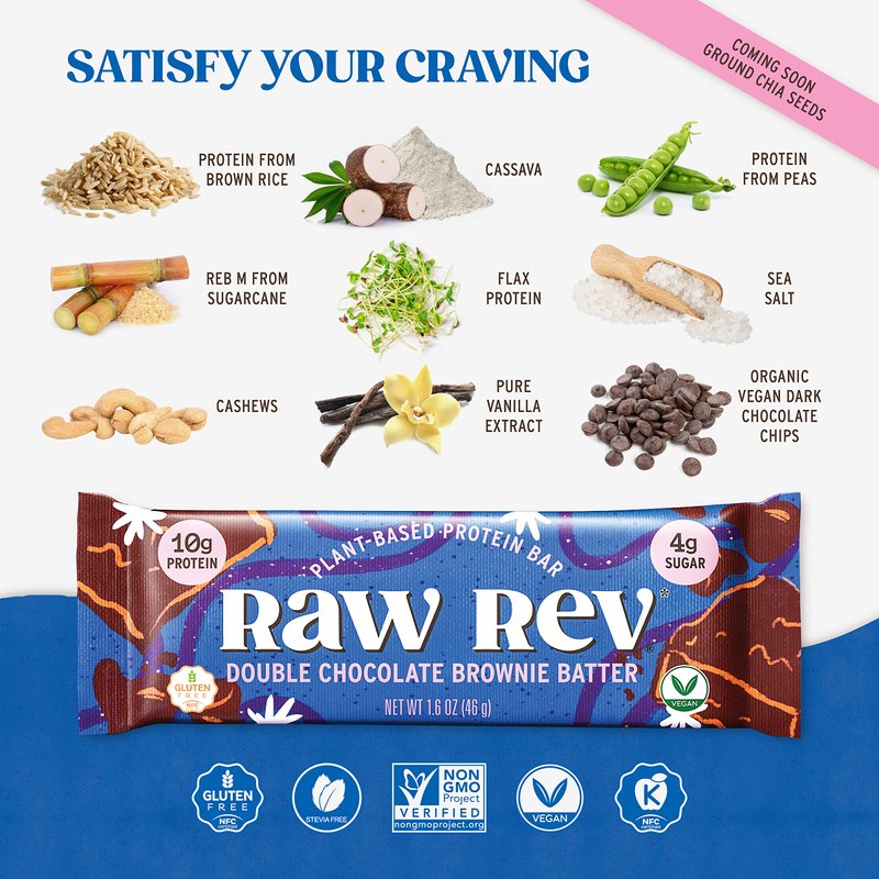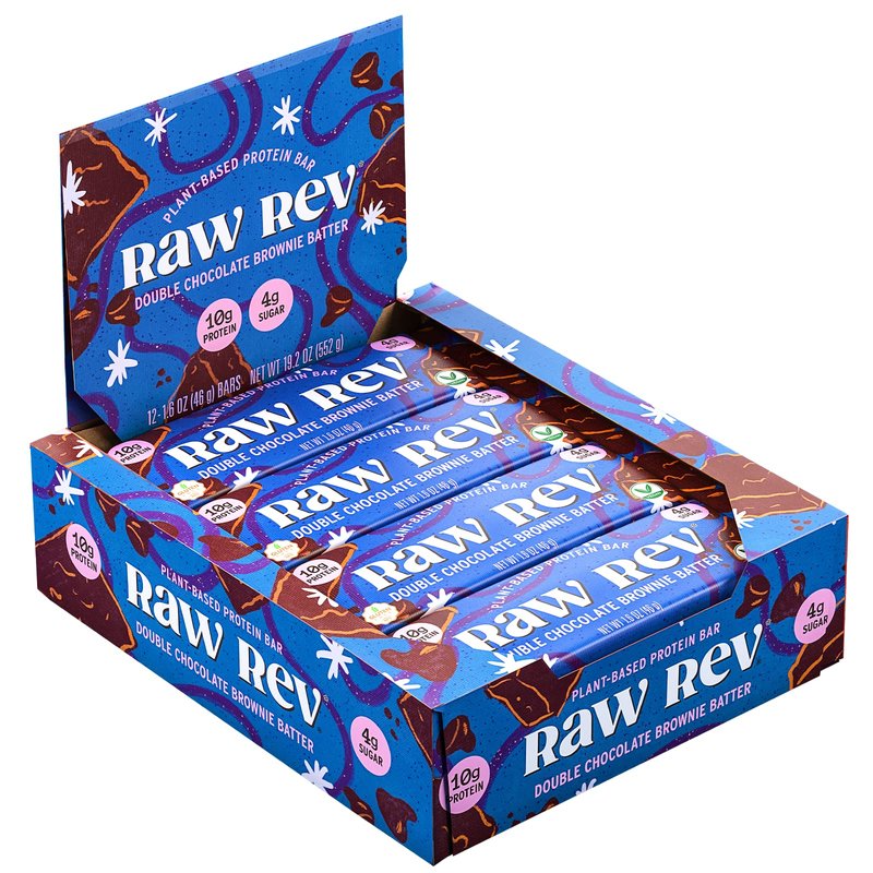 Raw Rev Vegan High-Protein Bars, Double Chocolate Brownie Batter, 10g Plant Protein, 12g Fiber, Non-GMO, 1.6 Oz, 12 Count (Pack of 1)