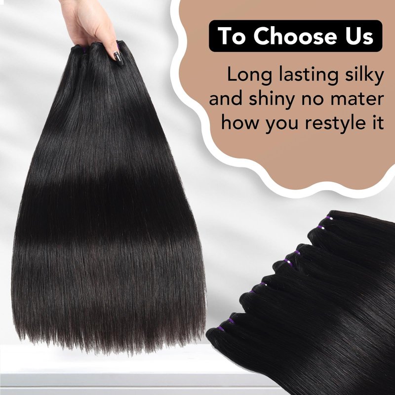 - ✔【16A Human Hair Bundles Meterial】100% Cambodian raw straight human hair bundles, cut from the young girl donor, ensuring a natural, smooth, and soft texture.Raw straight bundles human hair are thick and full ,seamless blend with your own hair, no synthetic,clean and healthy.