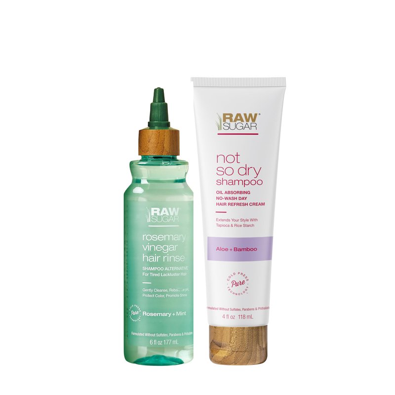 - Hair Care & Styling Kit: Support scalp and hair health while styling your tresses the way you like them with the Raw Sugar Rosemary Vinegar Hair Rinse and the Not So Dry Shampoo. The perfect shampoo alternative for on-the-go freshness