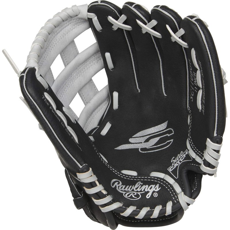 Rawlings | SURE CATCH T-Ball & Youth Baseball Glove | Right Hand Throw | 11" | Black/Grey