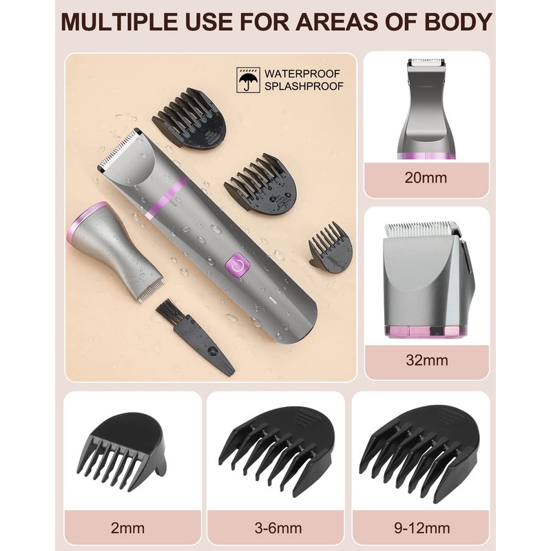 - 【All in One Hair Trimmer】The women razors, hair epilators, groomers & trimmers features 2 wide blades(20mm/32mm) and 3 guard combs, help you customize the shaving effect for your armpits, legs, bikini or arms. Keep you more clean, neat, and attractive.