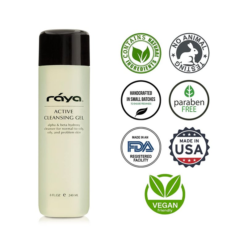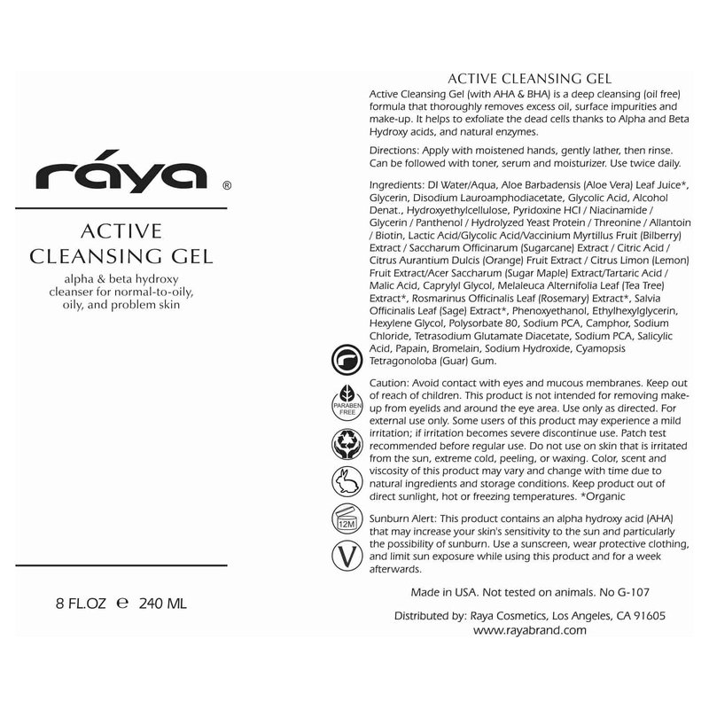 RAYA Active Facial Cleansing Gel (G-107), Oil Control Cleanser with AHA and BHA, Deep Pore Gel for Oily and Break-Out Skin, Gentle Face Wash for Women and Men, Suitable for Daily Use, 8oz or 16oz btl