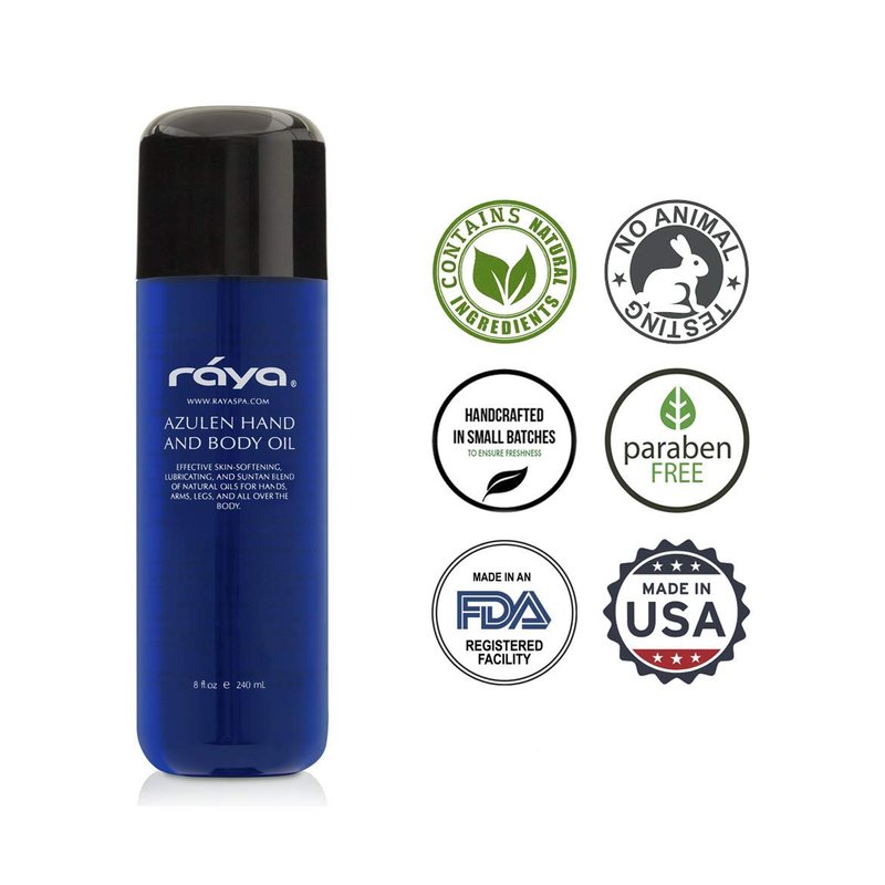 Raya Azulen Hand and Body Oil 8 oz (451) | Softening and Natural Blend of Oils for Hands, Arms, Legs, and Body | Great as a Body Massage Oil | Great for All Skin