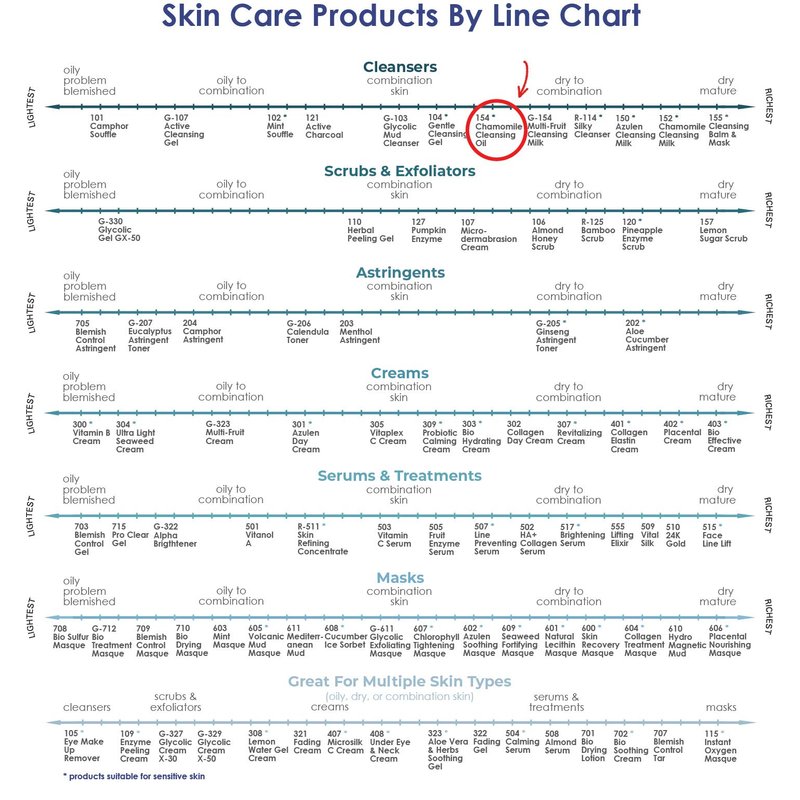 Chamomile Cleansing Oil is a light, silky, water soluble, natural oil blend that gently melts, dissolves, and washes away heavy make-up and impurities without stripping away natural oils. This product combines Chamomile Oil, Lavender Oil, and Vitamin-E to leave the skin feeling calm, clean, and refreshed. With the addition of water it becomes a gentle milky cleanser. It is recommended for all non-problem skin types and can be used as a daily facial cleanser or as needed to softly remove stubborn make-up. Chamomile Cleansing Oil (154) | RAYA