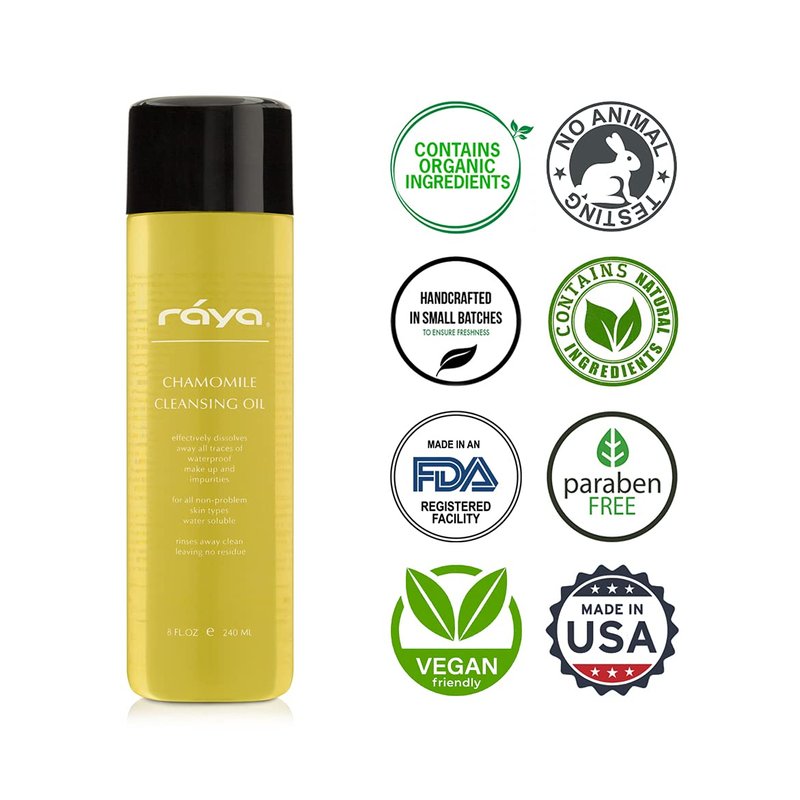 Raya Chamomile Facial Cleansing Oil (154) | Natural and Organic, Water-Soluble Oil Cleanser and Water-Proof Make-Up Remover For All Skin | Made With Chamomile and Lavender Oils
