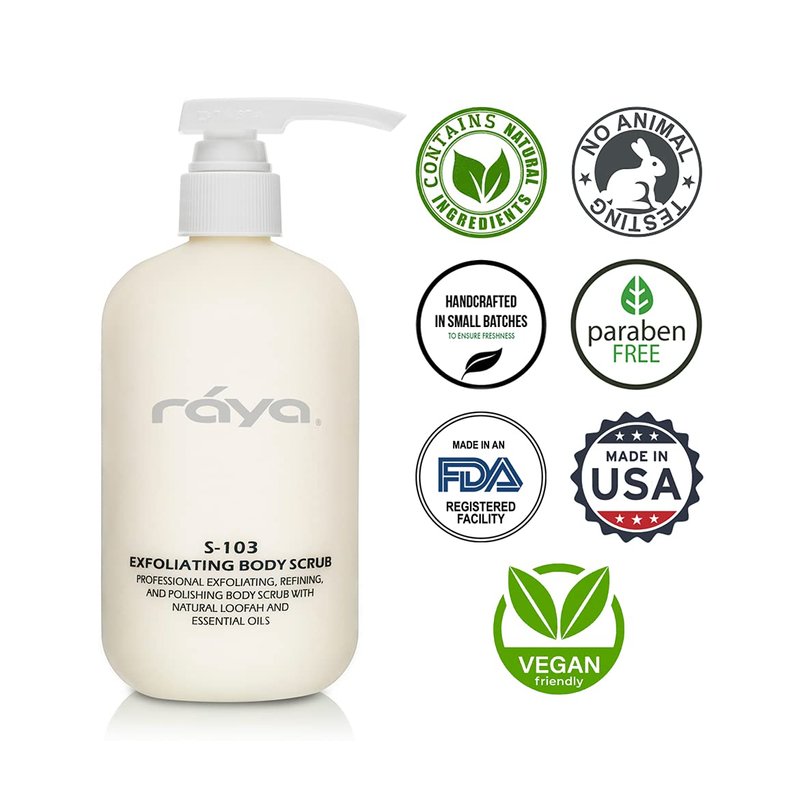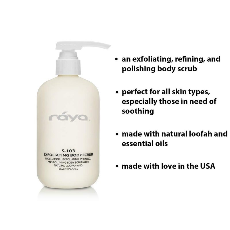 RAYA Exfoliating Body Scrub 16 oz (S-103) | Exfoliating, Refining, and Polishing Body Scrub | Made with Natural Loofah and Essential Oils | Relieves Ingrown Hairs