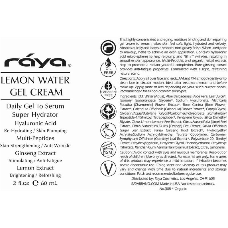 Raya Lemon Water Gel Cream (308) | Moisturizing, Skin-Repairing, and Anti-Aging Facial Day and Night Cream for Non-Problem Skin | Fills in Wrinkles and Improves Complexion