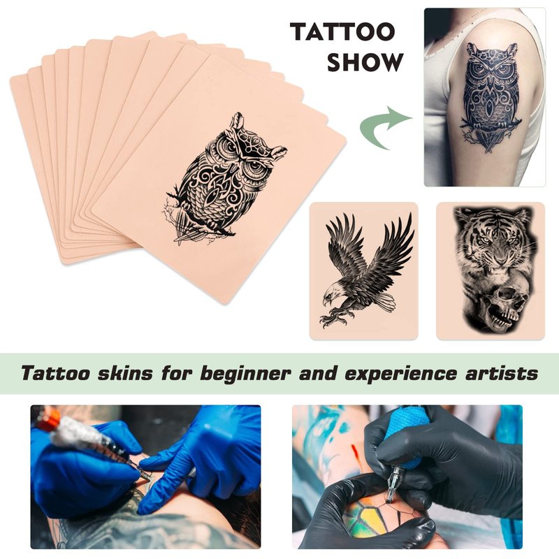 - 【Package and Size】 - Package include 5Pcs 7.4*5.6 inch Blank Tattoo Practice Skin and 15Pcs 11*8.5 inch Stencil Paper. The value combination suitable for beginners and experienced artists. Both sides of each tattoo skin are blank, providing enough space for your masterpiece creation.