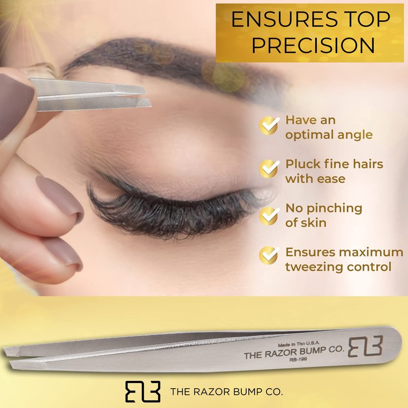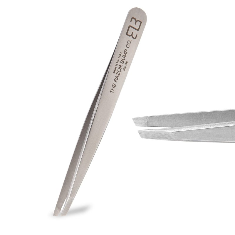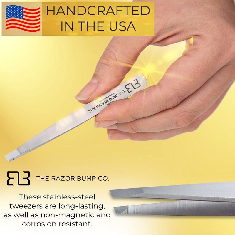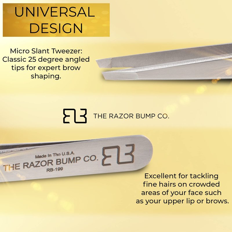 Razor Bump Co. Professional Micro Slant Tweezer, made in USA, Best Precision Tweezers for Eyebrows, Chin Hair, Ingrown Hair Removal – Surgical Grade, Rustproof, Non-Irritating Stainless Steel