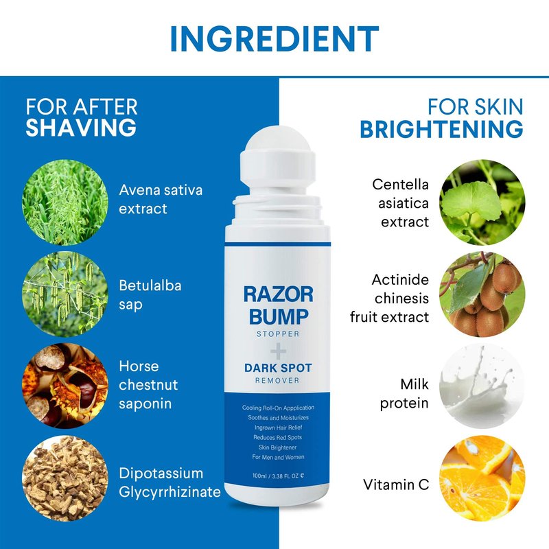 Razor Bump Stopper with Ingrown Hair Treatment: Razor Bumps Treatment for Men and Women, After Shave Solution for Ingrown Hairs and Razor Burns, Roll on Applicator- 3.38 Fl Oz