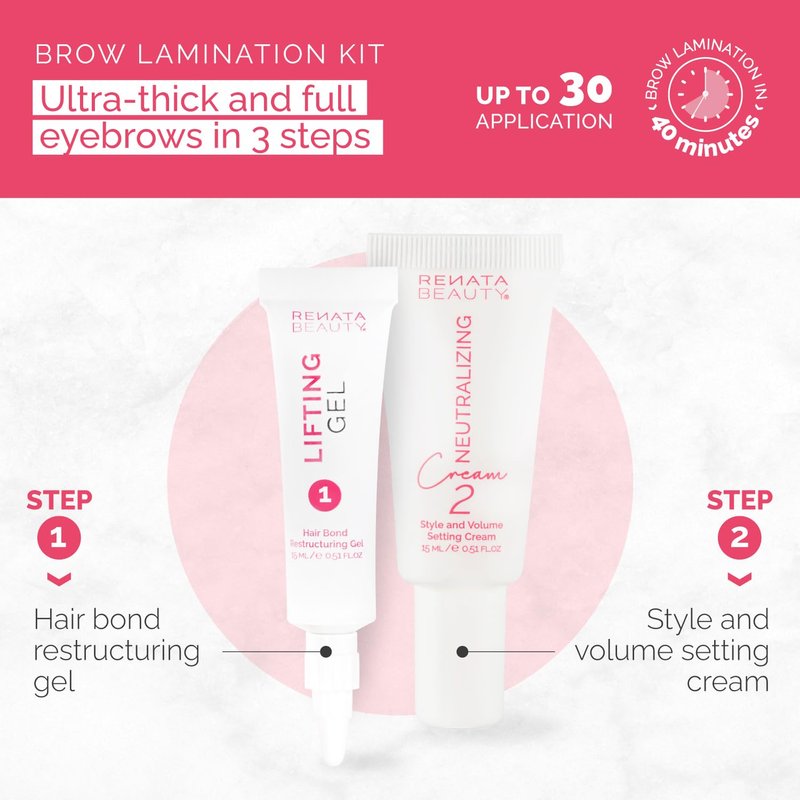 - 💕 COMPLETE DIY LAMINATION KIT: The Renata Beauty brow perm kit comes with everything you need for a complete and rewarding lamination experience from the comfort of your own home! You’ll receive: brow lifting gel, neutralizing cream, deep conditioning serum and a Pro Dual brow lamination brush for a superb finish!