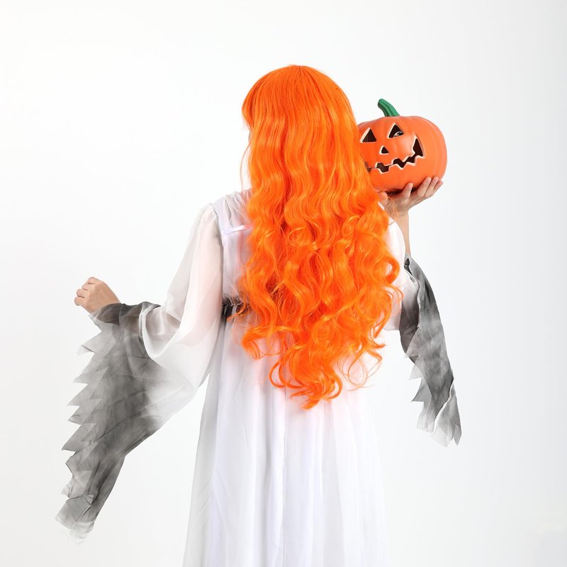 Rbenxia Curly Cosplay Wig Long Hair Heat Resistant Spiral Costume Wigs Anime Fashion Wavy Curly Cosplay Daily Party Orange 32" 80cm
