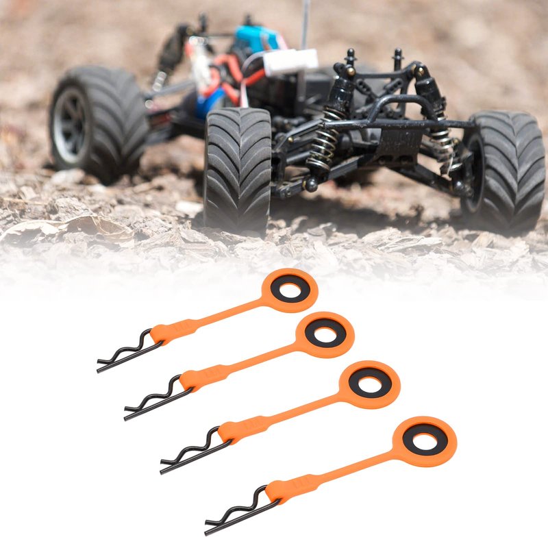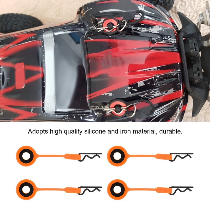 RC Car Shell Body Clip,4PCS Silicone and Iron RC Body Clip for 1/10 Model Car (Orange)