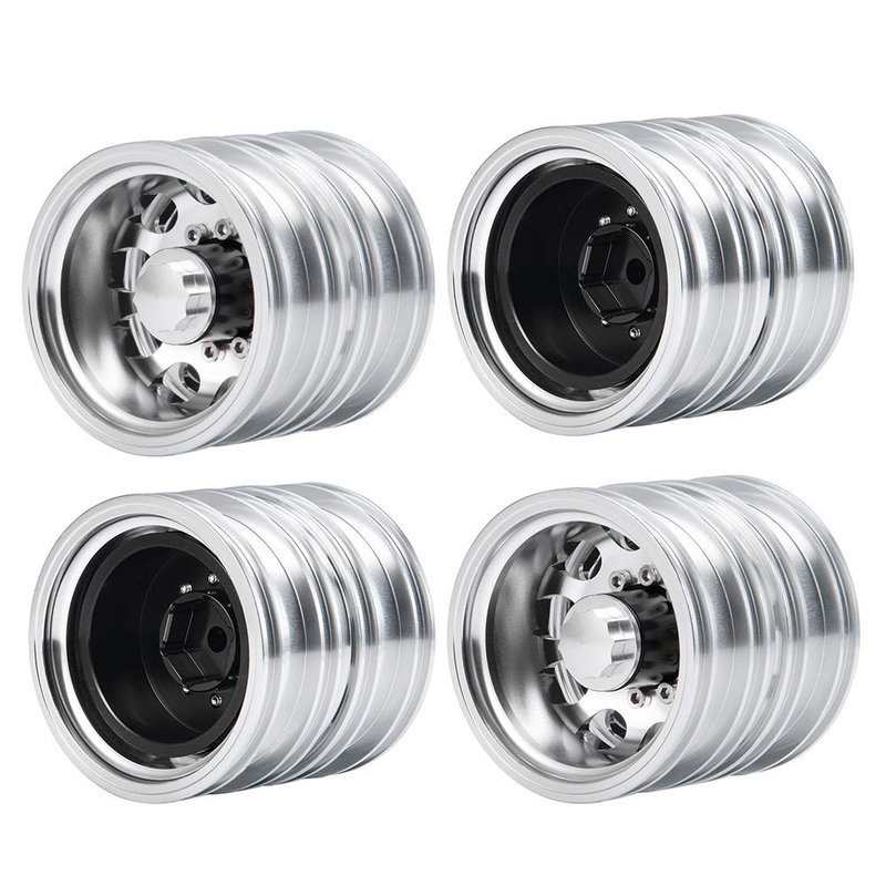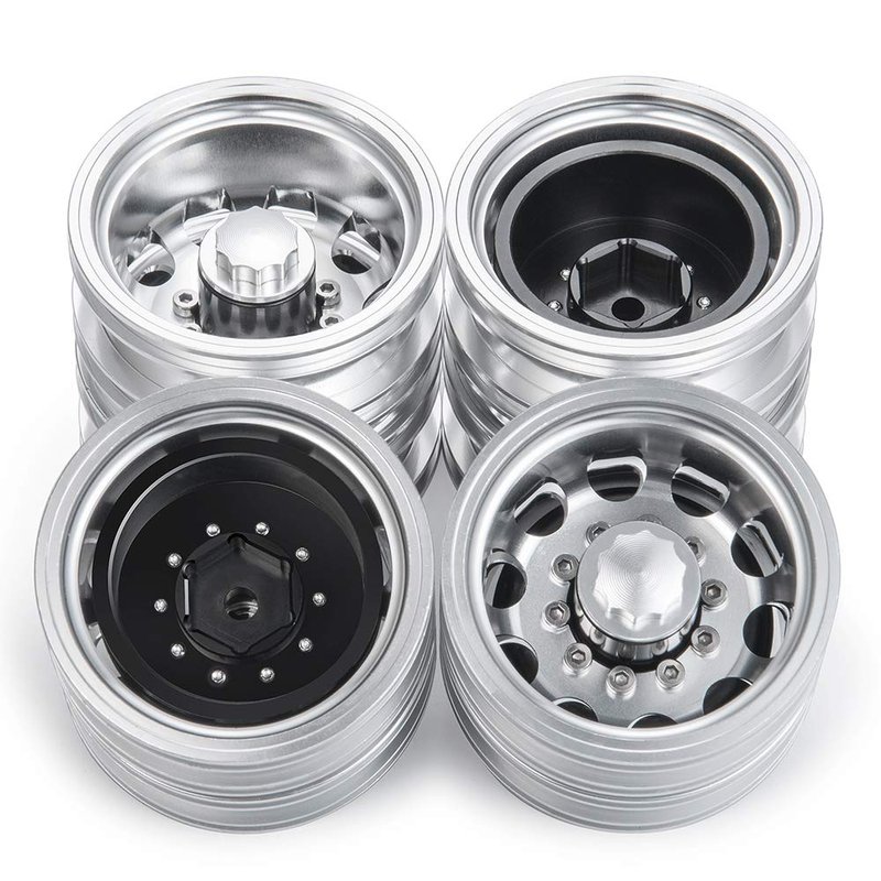 4pcs Aluminum Alloy Rear Wheel Rims Wheel Hubs for 1/14 Tamiya Trailer Tractor Truck RC Car