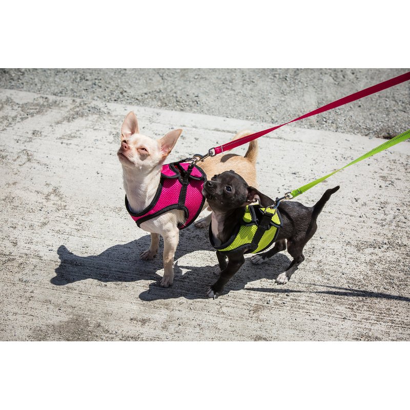 - Step in style for dogs who aren't comfortable with harnesses that go over their head