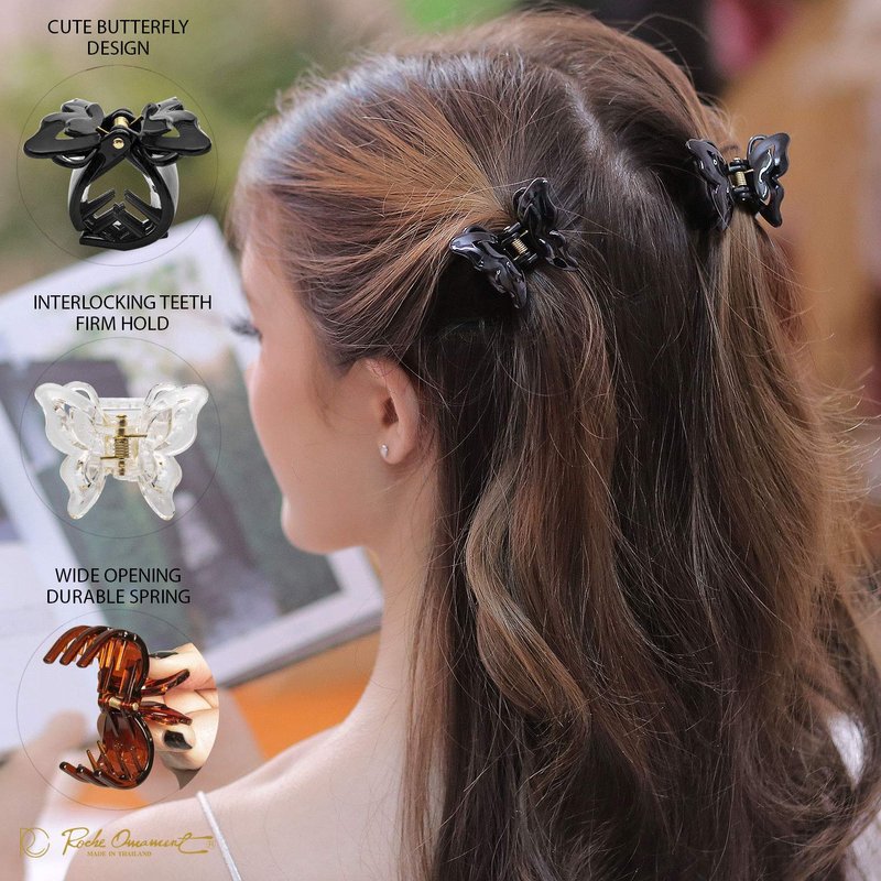 A beautiful RC ROCHE ORNAMENT hair clip that features a cute butterfly design. This premium quality plastic hair clip has secure interlocking claws that are designed to hold your hair firmly without slipping. These smooth claws can secure your hair in place without breaking or pulling your hair. These hair clips are perfect for creating any hairstyles of your choice, to accessorize your look or simply to keep hair away from your face. Use these hair clips to create a half up, up do, tousled chignon or a full bun. Available in a value pack size and a variety of colors for you to choose from. A perfect hair accessory for everyday daily use!