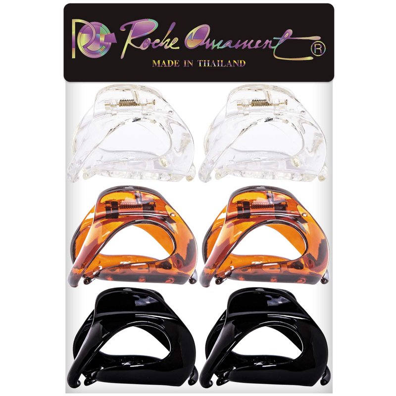 RC ROCHE ORNAMENT 6 Pcs Womens Oval Hollow Curved Jaw Clamp Barrette Interlocking Teeth No Slip Grip Beauty Fashion Girls Classic Plastic Accessory Hair Clip, Medium Clear Brown and Black