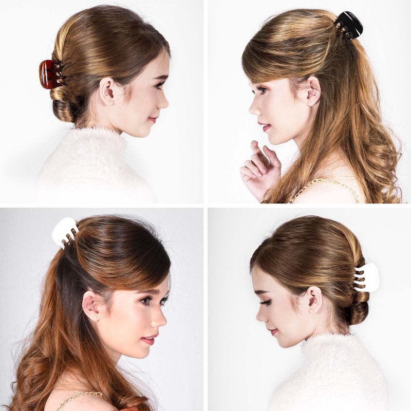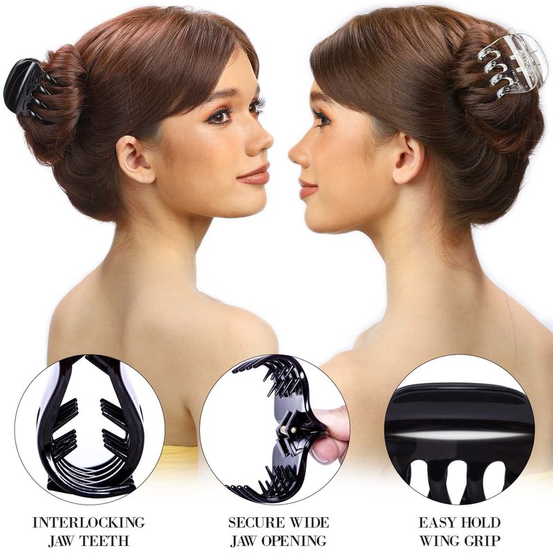 RC ROCHE ORNAMENT 6 Pcs Womens Plastic Jaw Claw Comb Clamp No Slip Grip Claws Strong Hold Interlocking Teeth Fashion Salon Beauty Girls Accessories Hair Clip, Medium Black