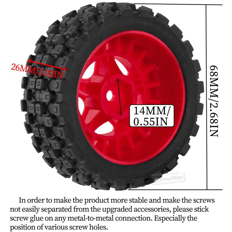 RcarmubWow RC Wheels and Tires for 1/18 Typhon Grom RC Crawler Car,RC Buggy Wheels & Rubber Tires,RC Truck Tires RC Wheels,4pcs,Red