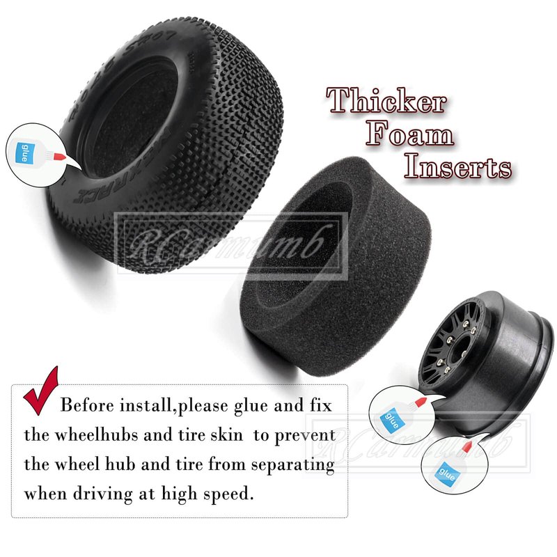 - 【Suitable for Almost all Surfaces】The rc rubber tire is with a special texture design, great for non-slipes,more grip,provides a strong ability of road holding and durability and can ensure stable and flexible driving. Suitable for running on off-road, on-road, pavement, sand, grass, dirt, gravel, snow, etc.