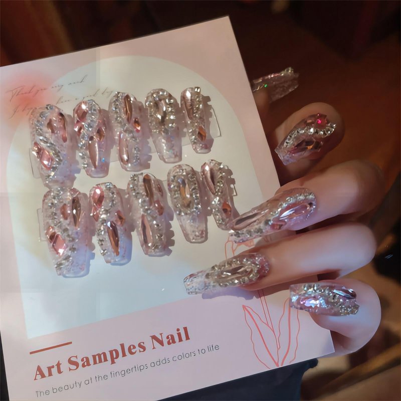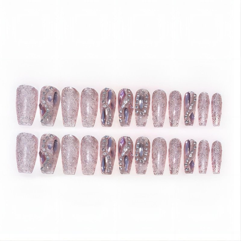 Not just about the beauty,we also care about the practical side.Medium press on coffin nails are easy to apply and come with enough pieces for two full sets.Also,the incorporated rhinestone glitter design adds an exceptional perception,making these nails the perfect choice for any occasion where you want to stand out.So why wait?Let your hands do the talking with the full diamond glitter false nails.They're not just accessories-they're fashion statements.