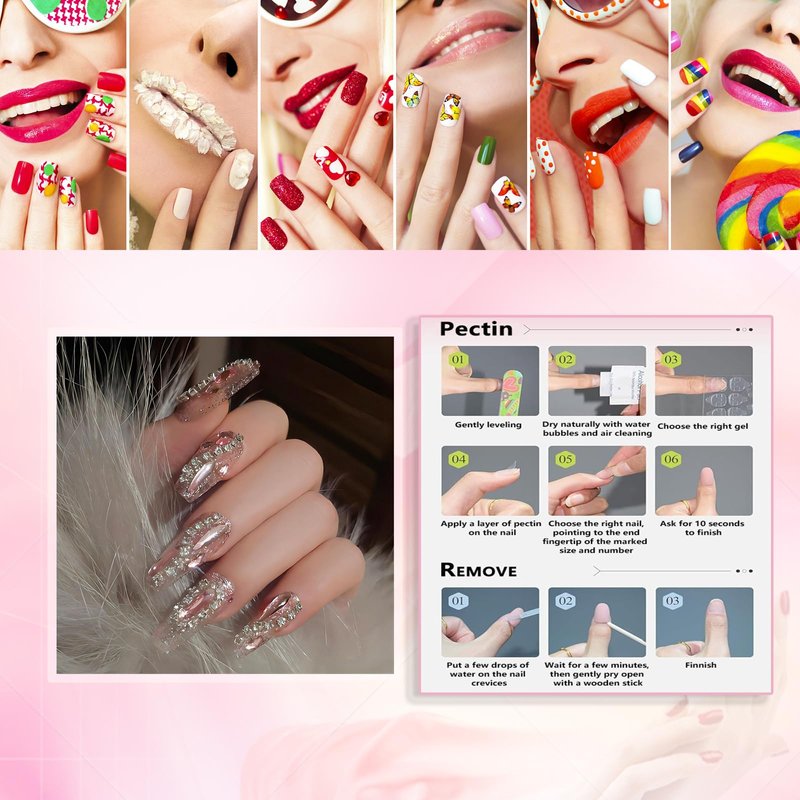 - Perfect Gift:Full diamond gel false nails with design can be given as a gift to your friends and relatives.It will bring them a comfortable and convenient manicure art experience.