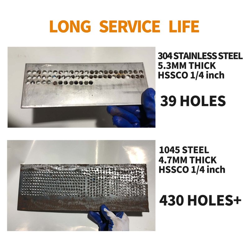 - [Cobalt 5% HSSCO] Industry grade M35 High Speed Steel, containing 5% cobalt. The drill bits are harder than HSS and can drill hard metal such as stainless. More wear resistant, longer life.