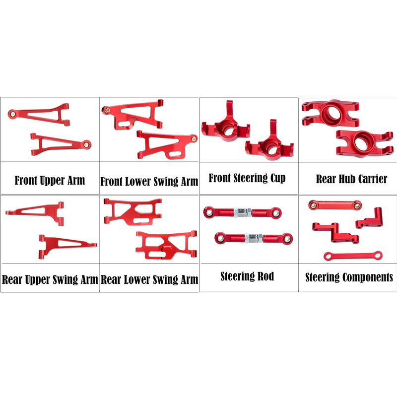 - 【Full Upgrades Parts for Hyper Go】 - This kit includes essential components for 1/14 Hyper Go Front and Rear Swing Arm Prats, for 1/14 Hyper Go Front and Rear Steering Cup Rear Hub Prats, for 1/14 Hyper Go Front and Rear Shock Tower Prats, for 1/14 Hyper Go Tie Rod Kit Prats, all meticulously designed to elevate your RC car's performance. These parts offer improved stability, enhanced steering response, and optimized suspension for a smoother and more controlled driving experience.