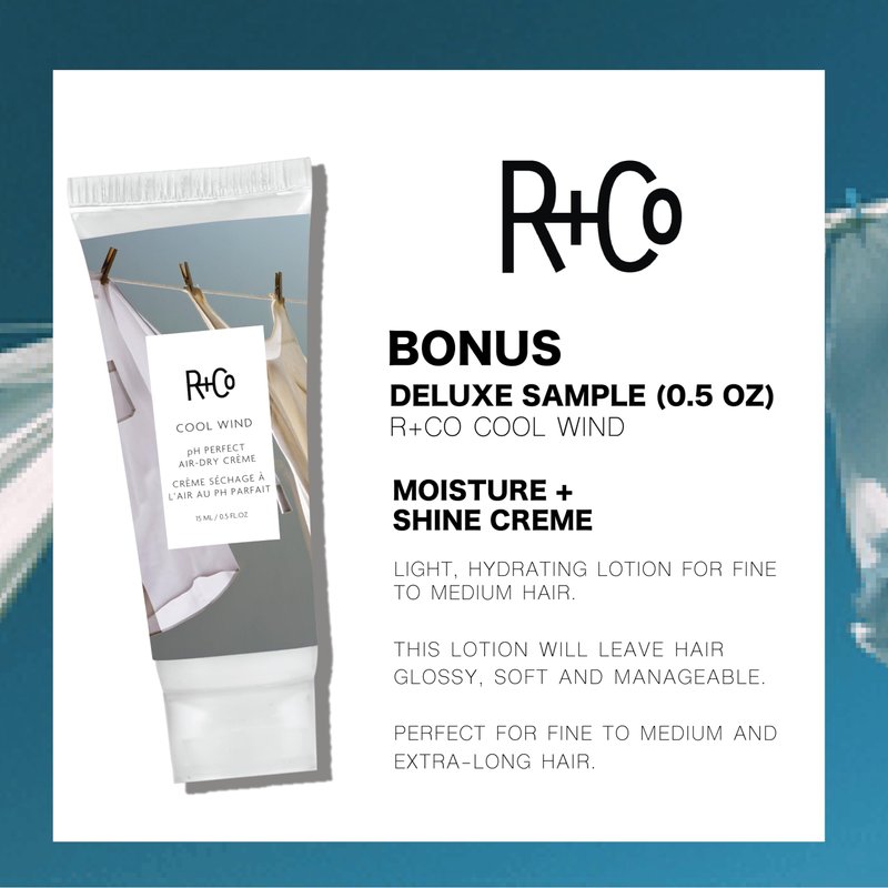 - BONUS: Complimentary R+Co Cool Wind pH Travel Size (.5 Oz)