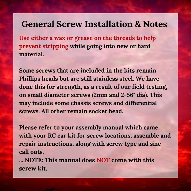 - WORRY FREE: High Performance RC Screw Set made with the best stainless steel money can buy.