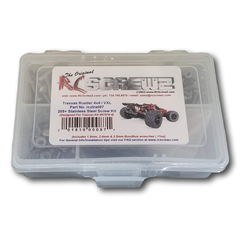 This RCScrewz Stainless Steel Screw Set replaces all fasteners in the Traxxas Rustler 4x4/VXL (67076-4) with high quality polished stainless steel (A4 and A6) components.