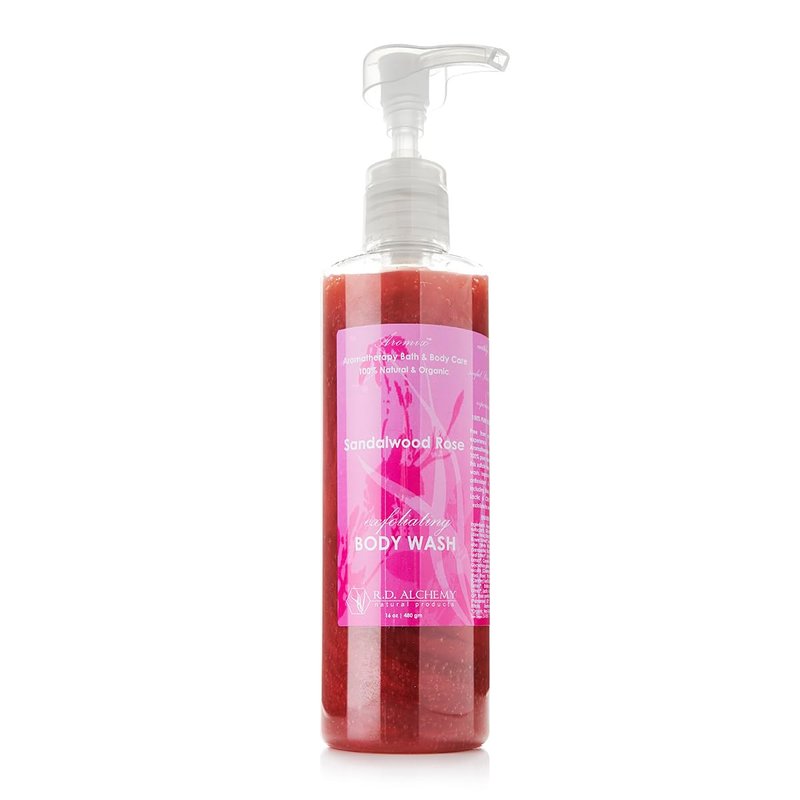 RD Alchemy - 98% Natural & Organic Sandalwood Rose Body Wash Shower Gel - Rich and Floral to Soothe and Enlighten while Cleansing, Exfoliating, and Renewing