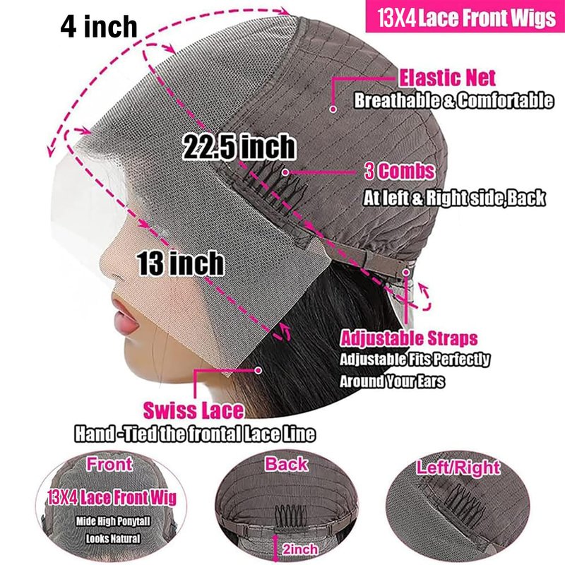 - Wig Cap: Deep wave wigs human hair pre plucked, medium cap size(22 inch - 22.5 inch), fit most people, with 3 combs and two adjustable straps make it easy to install, breathable & durable lace material make it more comfortable