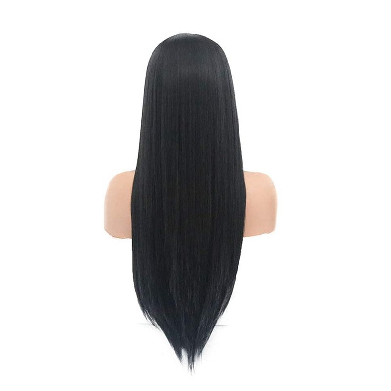 RDY Black Silky Straight Lace Front Wigs for Women Girls with Middle Parting Natural Looking Heat Friendly Synthetic Wig Soft Swiss Lace Daily Use Cosplay Wig 150% Density (18Inch, Black-1B)