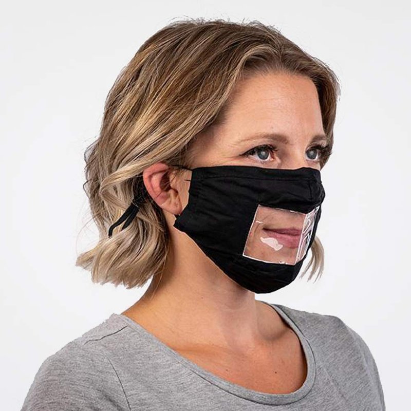 The perfect mask for those who are part of the deaf and hard of hearing community, teacher, service workers, or anyone who relies on reading lips and facial expressions to communicate much easier. A soft comfortable breathable face covering with a clear window. Now show off your smile and communicate with facial expressions with the Read My Lips transparent window reusable face mask. Higher-quality soft polyester material with comfortable adjustable ear straps for all-day wear. Now others will be able to see your facial expressions and read your lips. (Minimal fogging is normal you may add a couple of drops of anti-fog on the plastic film.)