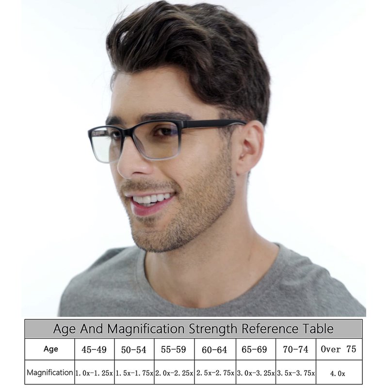 - 【Lightweight Stylish Design with Spring Hinge】:Stylish Two-tone Colors Design Men's Reading Glasses with Adjustable Spring Hinge Let the Temples Can Open Up to 25° Outwards, Suitable for Any Face Shape. One-piece Nose Pads, Suitable for All Kinds of Nose Type, Wearing for a Long Time Will Not Feel Oppressive or Uncomfortable. You Can Protect Your Eyes While Looking Stylish.