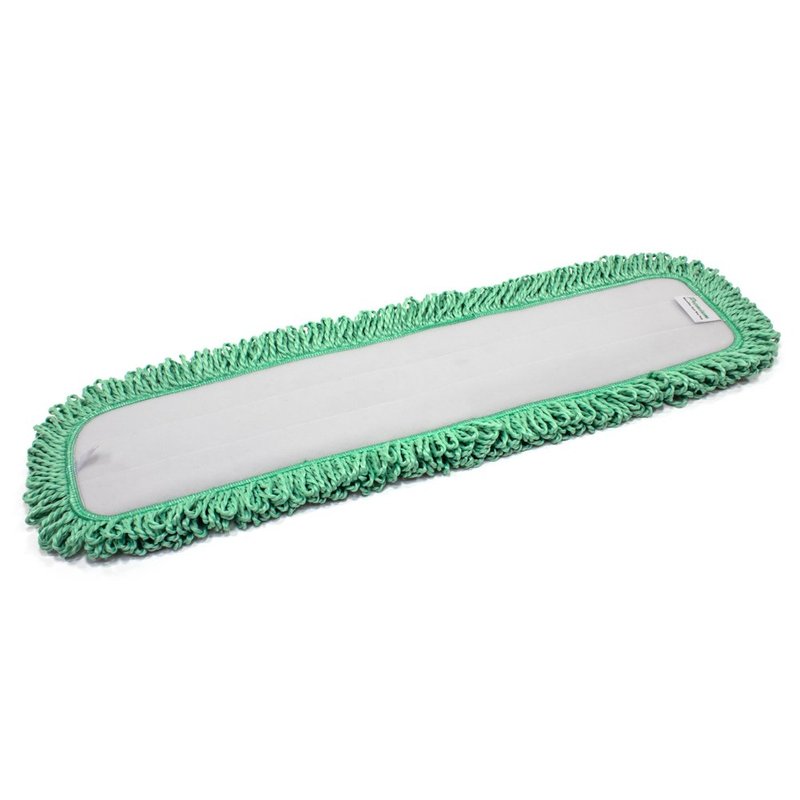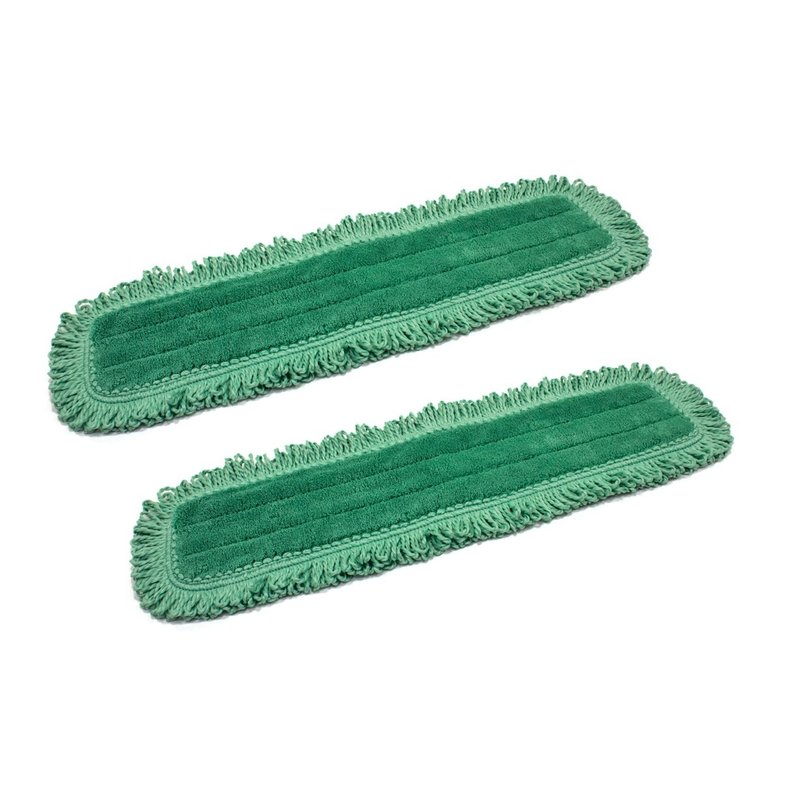 This is a 2-pack of high quality Microfiber 24" Dust with Green Fringe Mop Replacement Pads. We offer Commercial and Janitorial Microfiber Replacement Mop Pads in all sizing. This 24" mop pad can be compared to Microfiber style microfiber pads. Dense Ultra-Fine quality microfiber removes more dust and dirt than any conventional cleaning mops. We use advanced hook-and-loop backing material which holds up under harsh laundering conditions and attaches pads more securely to your mop frames and bases. Ultra durable dust pad construction, withstands more than 500 washes before needing replacements. Double finished microfiber edges retain pad shape with use over time. High-pile and looped microfiber fringe construction grabs and holds larger dust particles and debris with ease. This is our favorite dust pad we offer for your commercial mop.