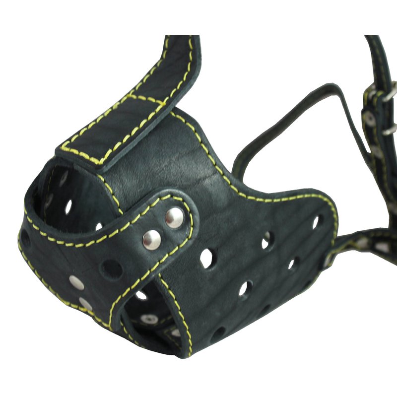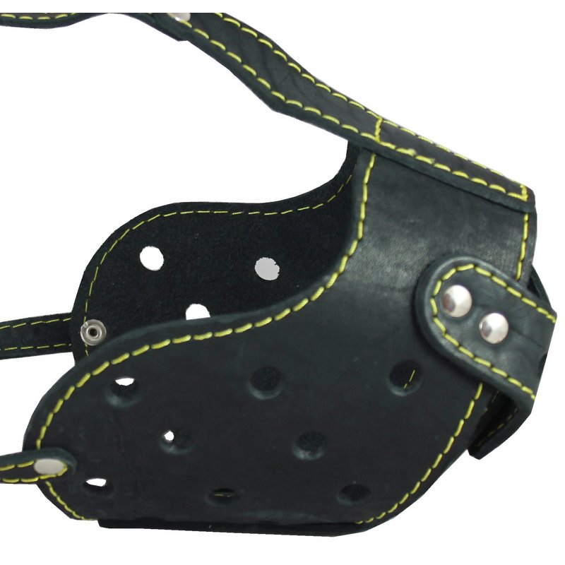 - Well-fitting, comfortable muzzle is made of high quality genuine leather, trimmed and riveted for extra strength.