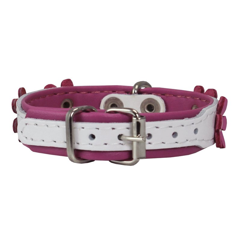 Real Leather Daisy Flowers Dog Collar (White/Pink, 10.75"-12" Neck; 5/8" Wide)