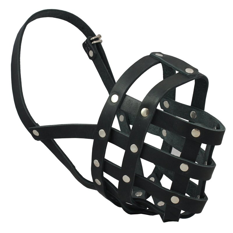 - Well-fitting, comfortable muzzle is made of high quality genuine leather, trimmed and riveted for extra strength.